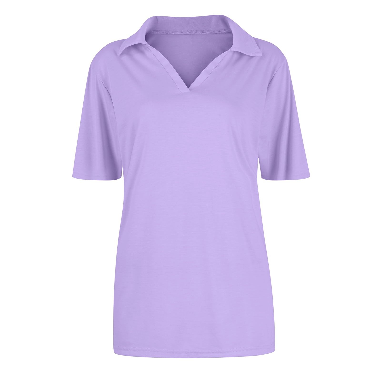 Womens Short Sleeve Tops Collared V Neck Polo Shirts Summer Work Tunic Tops to Wear with Leggings Dressy Blouses 2024 Womens Polo Shirts Short Sleeve Tunic Tops for Women Loose Fit Dressy, Purple